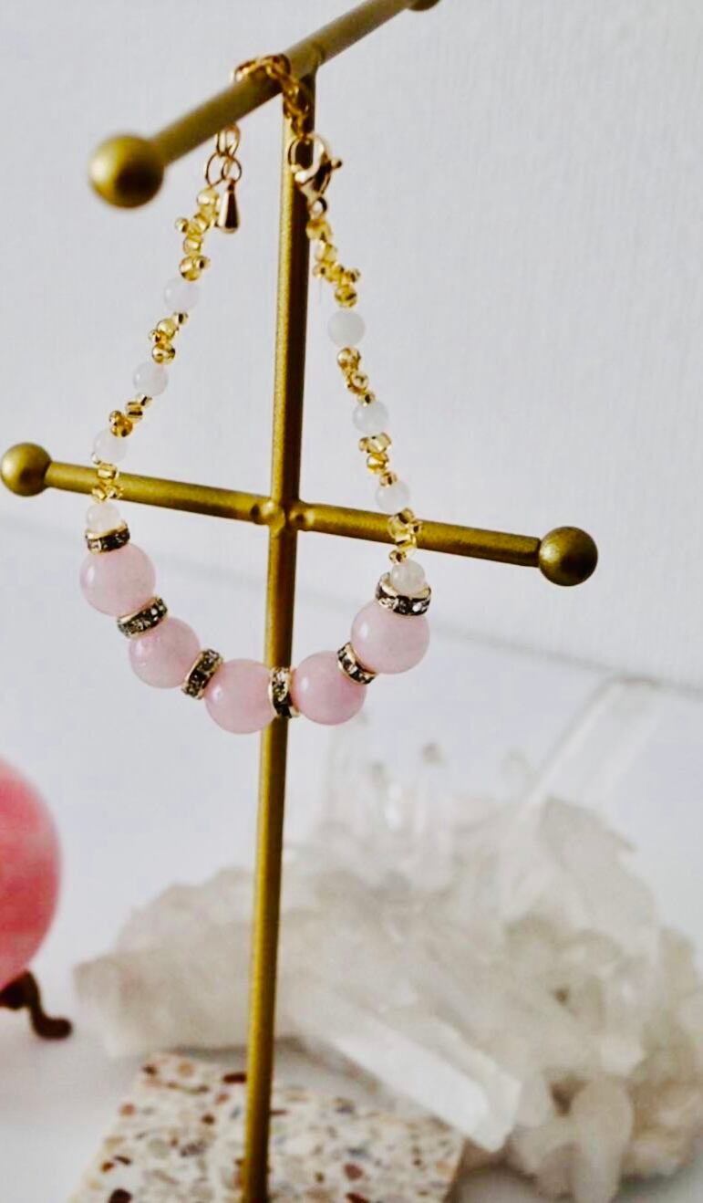 ローズクウォーツ・ホワイトジェイド・ゴールドの組み合わせが、可愛らしさと華やぐ気持ちを高めてくれます!